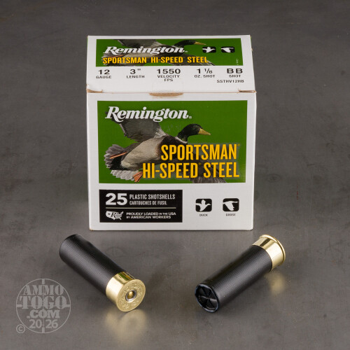 250rds - 12 Gauge Remington Sportsman Hi-Speed Steel 3" 1 1/8oz. #BB Shot Ammo Details