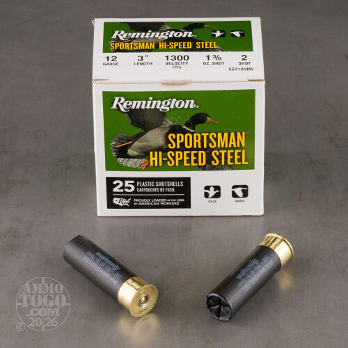 250rds - 12 Gauge Remington Sportsman Hi-Speed Steel 3" 1 3/8oz. #2 Shot Ammo Details