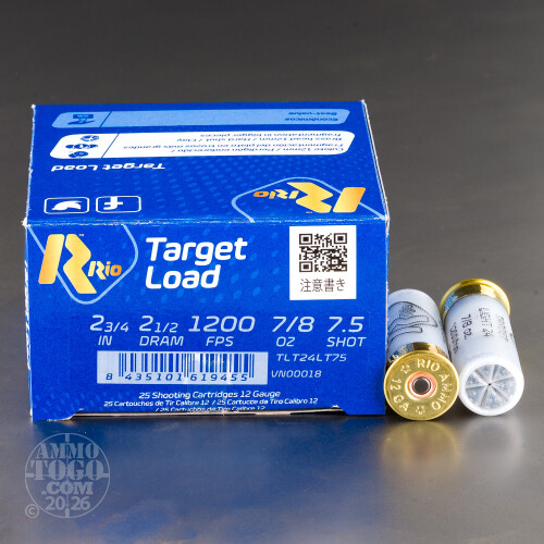 250rds – 12 Gauge Rio Target Load Light 2-3/4" 7/8oz. #7.5 Shot Ammo Details