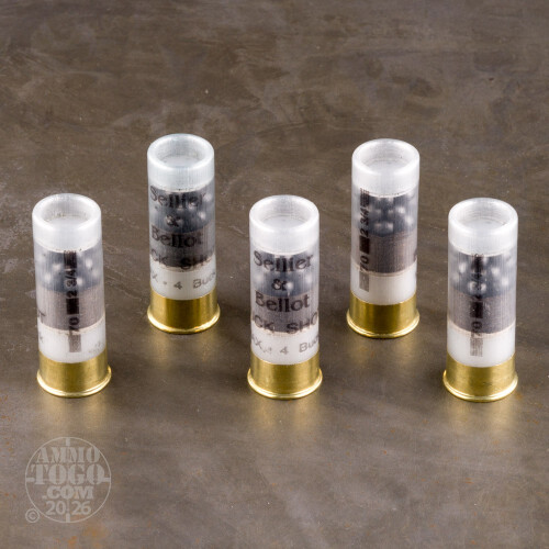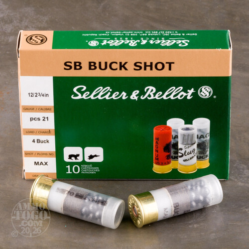 This is 12 Gauge Sellier & Bellot 2 3/4" Max Dram 21 Pellet #4 Buckshot Ammo. This ammo has a see-thru case so it is easy for law enforcement agents to identify it as buckshot. This is some great ammo for self-defense and hunting. This is considered some of the best buckshot on the market. It comes packed in 10rd. boxes, 25 boxes per case.