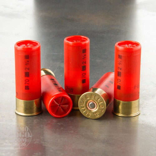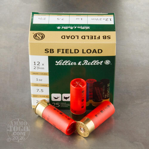 This bulk pack of 12 gauge shotgun shells from Sellier & Bellot will keep you comfortably stocked for multiple hunting seasons as well as training and patterning sessions! This field load contain one ounce of #7.5 size birdshot which does well to drop small pheasants, chukar, partridge, and other common game birds with minimal damage done to edible meat. As a substitute, this shell profile is also not a bad choice for medium range work at the local skeet club.