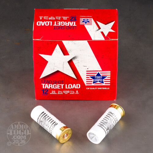 250rds – 12 Gauge Stars and Stripes 2-3/4" 1-1/8oz. #8 Shot Ammo Details
