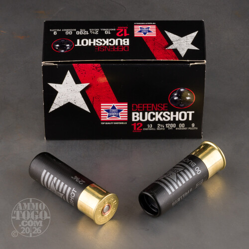 250rds - 12 Gauge Stars & Stripes 2-3/4" 00 Buckshot Ammo Details