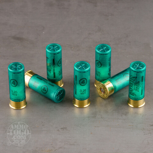 Hunting turkey, pheasant, and other larger birds isn’t easy. You’ve got to have nerves of steel, brains of steel, feet of steel, and various other metal body parts. But most importantly, you’ve got to have an ample supply of 12 Gauge ammunition!This ammo is made by Turaç, which has operated for over three decades in its home country of Turkey. (Turkish ammo for hunting Turkey. Fitting!) Each 2-3/4” shell is packed to the brim with 1-3/16 ounces of #4 lead shot, as well as enough low-fouling powder to accelerate that heavy payload to a muzzle velocity of 1,295 fps. You’ll experience heavier recoil than you’re accustomed to if you’re only used to shooting trap, but you’ll also dump way more kinetic energy into your target. Heavier #4 shot pellets have the momentum they need to penetrate nice and deep, which assures the stopping power requisite for bagging beefy gobblers.