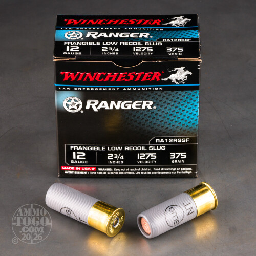 250rds – 12 Gauge Winchester Ranger 2-3/4" 375gr Frangible Slug Ammo