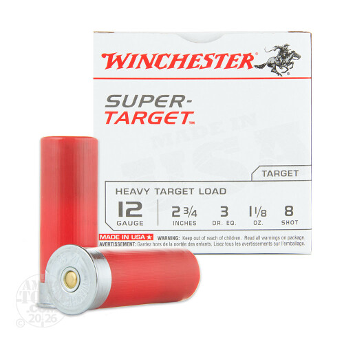 250rds - 12 Gauge Winchester Super Target 2 3/4" 1 1/8oz. #8 Shot Ammo Details