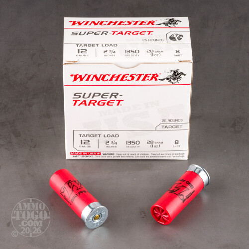 250rds – 12 Gauge Winchester Super Target 2-3/4" 1oz. #8 Shot Ammo Details