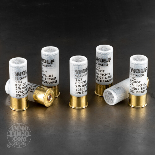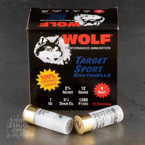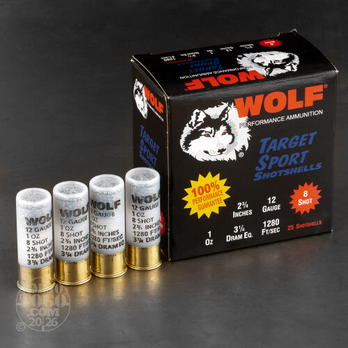 250rds – 12 Gauge Wolf Target Sport 2-3/4" 1oz. #8 Shot Ammo Details