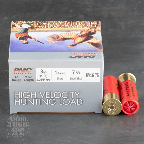 250rds – 16 Gauge PMC High Velocity Hunting Load 2-3/4" 1-1/8oz. #7-1/2 Shot Ammo Details