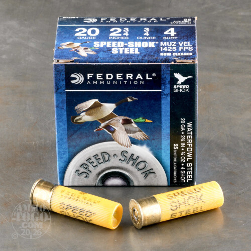 250rds – 20 Gauge Federal Speed-Shok 2-3/4" 3/4oz. #4 Steel Shot Ammo