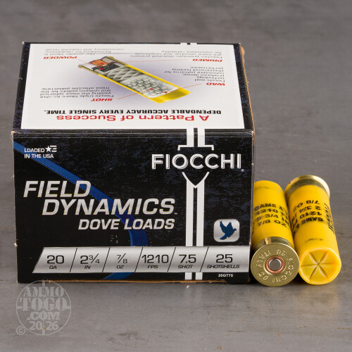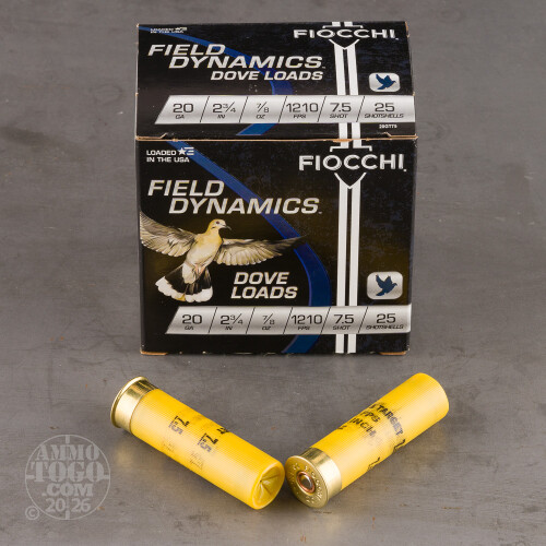 250rds – 20 Gauge Fiocchi 2-3/4" 7/8oz. #7.5 Shot Ammo Details