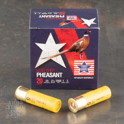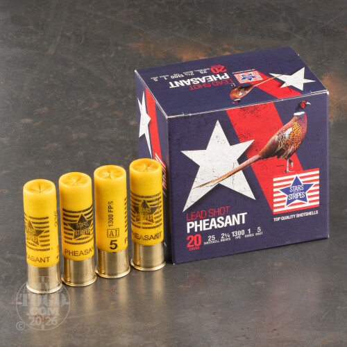 You’ve got to be cautious while you’re shopping for economical ammunition. You don’t want cheap ammo -- that’s a good way to shoot yourself in the foot, but not in the literal sense. What you want is ammo that offers good value, like this case of 20 Gauge shotshells by Stars & Stripes out of Largo, FL. This ammo is loaded carefully to deliver a consistently fast muzzle velocity of 1,300 fps, as well a predictable spread that’ll let you take aim with confidence.This shell is loaded with one full ounce of #5 lead shot. With 170 individual .12” pellets to issue per trigger pull, you’ll enjoy a pattern that’s thick enough to take down even the mightiest pheasant, even if its hiding behind dense scrubgrass. #5 is a versatile shot with the range needed for taking duck and the power to knock down turkey. But for Stars & Stripes’ price on this case of ammo, you’ll have no qualms simply shooting during your idle hours or taking a potshot at a squirrel who’s been getting a little too fond of the taste of your home’s siding.