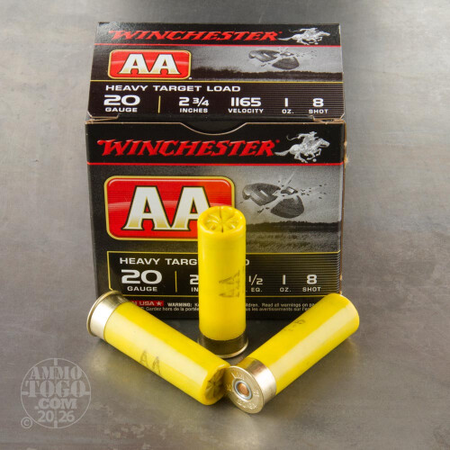 250rds - 20 Gauge Winchester AA Heavy Target 2-3/4" 1 Oz. #8 Shot Ammo