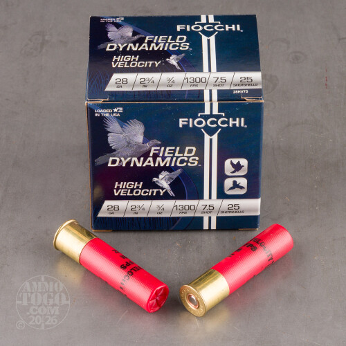 250rds – 28 Gauge Fiocchi 2-3/4" 3/4oz. #7.5 Shot Ammo Details
