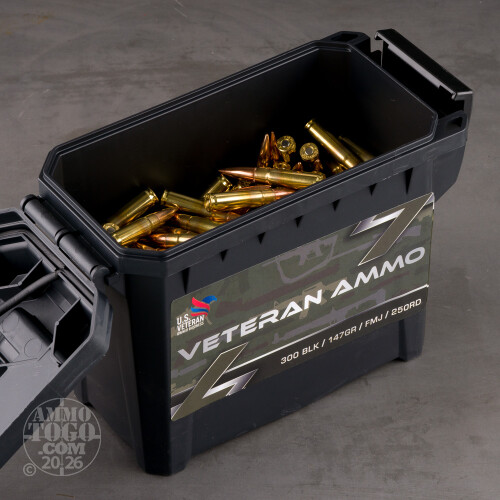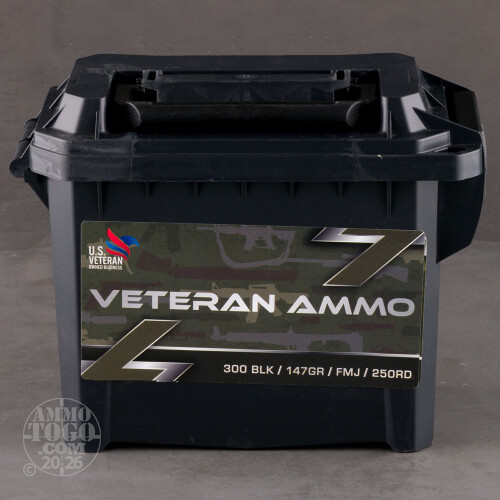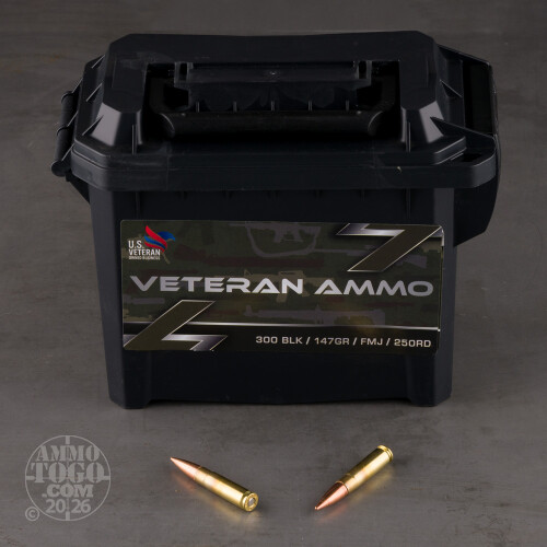 250rds – 300 AAC Blackout Veteran Ammo 147gr. FMJ Ammo in Field Box