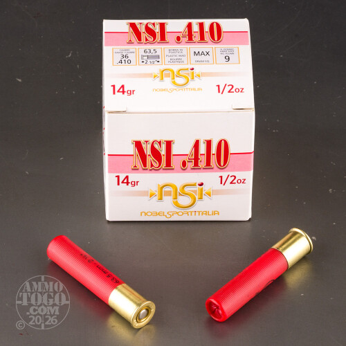 250rds – 410 Bore NobelSport 2-1/2" 1/2oz. #9 Shot Ammo Details