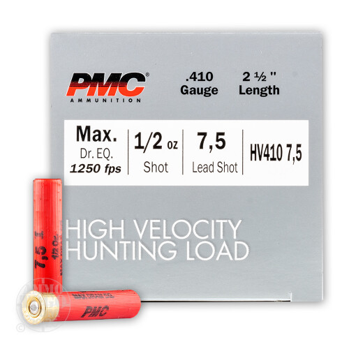 250rds – 410 Gauge PMC High Velocity Hunting Load 2-1/2" 1/2oz. #7.5 Shot Ammo Details
