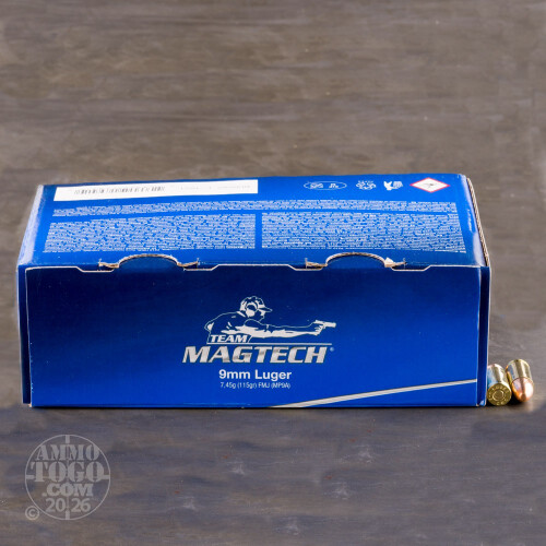 250rds – 9mm Magtech Shootin' Size 115gr. FMJ Ammo Details