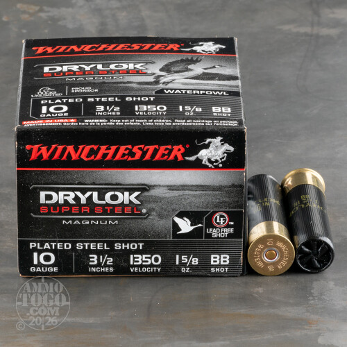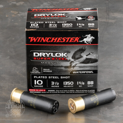 Leave a ReviewWhy Shooters and Hunters love or hate 25rds - 10 Gauge Winchester Drylok Super Steel Magnum 3 1/2" 1 5/8oz. #BB Shot Ammo