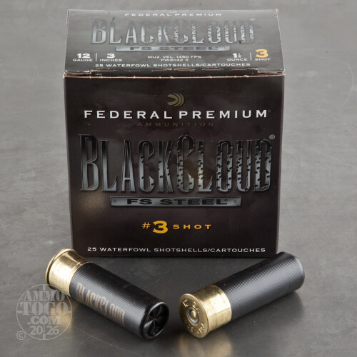 25rds - 12 Ga. Federal Blackcloud 3" 1 1/4oz. #3 Steel Shot Ammo Details