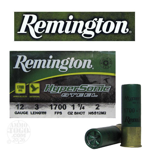 25rds - 12 Ga. Remington HyperSonic 3" 1 1/4oz #2 Non-Toxic Steel Shot Ammo