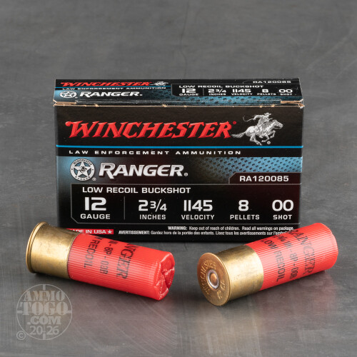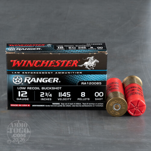 This is 12 Gauge Winchester Ranger Low Recoil 2 3/4" 8 Pellet 00 Buckshot Ammo. This is considered to be some of the best law enforcement buckshot available. It has an excellent shot pattern and is low recoil for quick shot after shot acquisition.