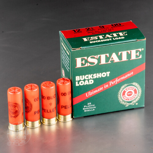 25rds – 12 Gauge Estate 2-3/4" 9 Pellets 00 Buckshot Ammo