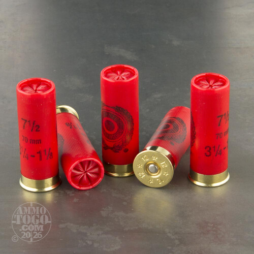 This is 12 Gauge Estate Dove and Quail Loads 2 3/4" 1 1/8 oz. #7.5 Shot Ammo. Estate Cartridge shotshells may be used for a variety of applications both in the field or at the range. It comes packed in 25rd. boxes. Muzzle Velocity: 1255 FPS.
