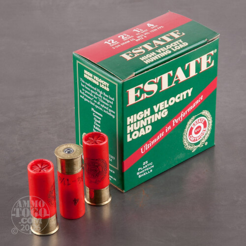 25rds - 12 Gauge Estate HV Hunting 2 3/4" 3 3/4 Dram 1 1/4 oz. #4 Shot Ammo