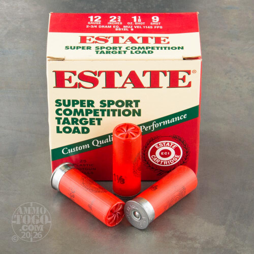 25rds - 12 Gauge Estate Super Sport Competition 2 3/4" 2 3/4 Dram 1 1/8oz. #9 Shot Ammo