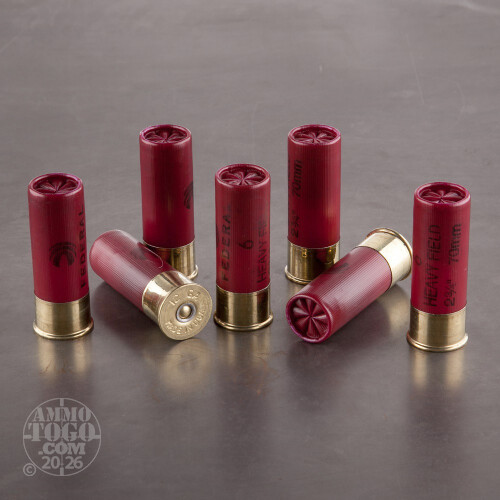 This is 12 Gauge Federal Game Shok Heavy Field 2 3/4" 3 1/4 DRAM EQ 1 1/8oz. #6 Shot Ammo. This ammo is for the avid rabbit, squirrel, or upland bird hunter. Choose Federal Game Shok to keep you effective in the field. Muzzle velocity 1255fps. This ammo comes packed in 25rd. boxes.