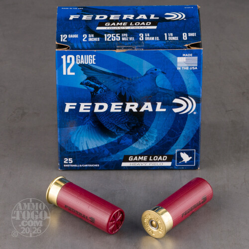 Leave a ReviewWhy Shooters and Hunters love or hate 25rds - 12 Gauge Federal Game Shok Heavy Field 2 3/4" 1 1/8oz. #8 Shot Ammo