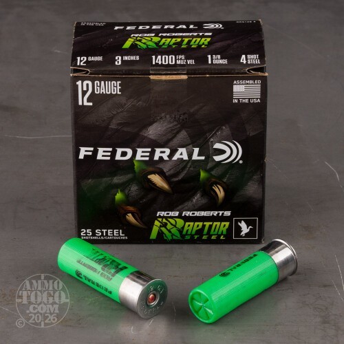 Leave a ReviewWhy Shooters and Hunters love or hate 25rds – 12 Gauge Federal Rob Roberts Raptor Steel 3" 1-3/8oz. #4 Steel Shot Ammo
