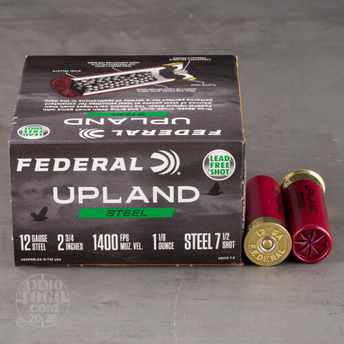 25rds – 12 Gauge Federal Upland Steel 2-3/4" 1-1/8oz. #7.5 Shot Ammo