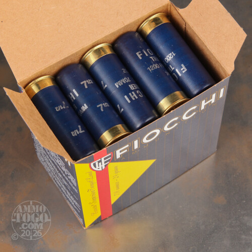 This package contains 25 rounds of Fiocchi 12 Gauge Target ammunition. Each new production 2 ¾ inch shotgun shell is loaded with ⅞ ounce of #7 ½ shot. Fiocchi uses only the finest raw materials and components, including hard, uniform, one-piece plastic wads, reliable, clean burning propellants, and non-corrosive primers.