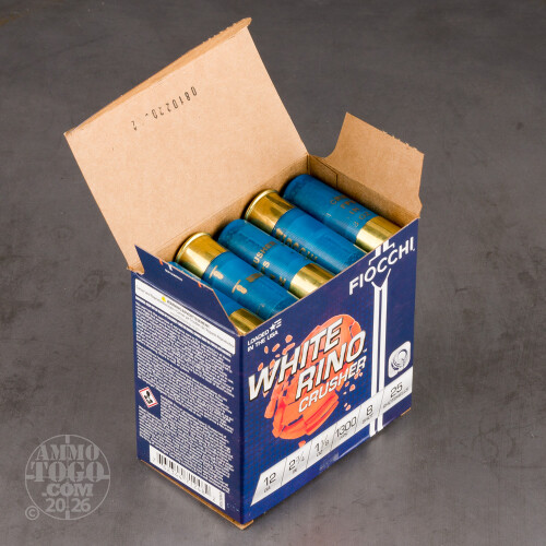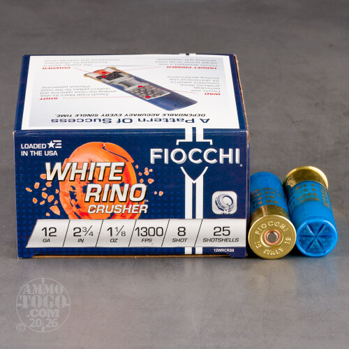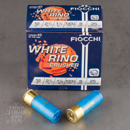 25rds – 12 Gauge Fiocchi White Rino Crusher 2-3/4" 1-1/8oz. #8 Shot Ammo Details