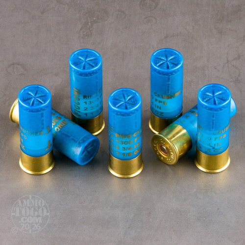 Fiocchi’s White Rino line of 12 Gauge ammunition offers all the great quality you need to really enjoy yourself while you’re polishing up your trap, skeet and sporting clays skills. This shotshell’s 1-1/8 ounces of #8 shot is composed of high-antimony lead, which is hard enough to tear out of the barrel undeformed – the secret behind its impressively tight pattern over long distances.But this isn’t Fiocchi’s White Rino ammo. It is their White Rino Crusher ammo, which is loaded with the clean-burning powder it needs to achieve a muzzle velocity of 1,300 fps instead of merely 1,250 fps. That extra boost of speed will give you an advantage as you’re tracking especially fast clays. But because Fiocchi’s one-piece cushioned wads do their job so well, you’ll still note gentle recoil which won’t throw off your aim or slam your shoulder too hard.
