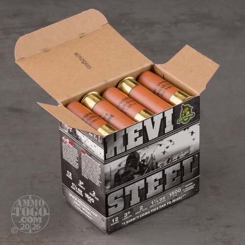 Leave a ReviewWhy Shooters and Hunters love or hate 25rds – 12 Gauge Hevi-Steel 3" 1-1/4oz. #2 Steel Shot Ammo