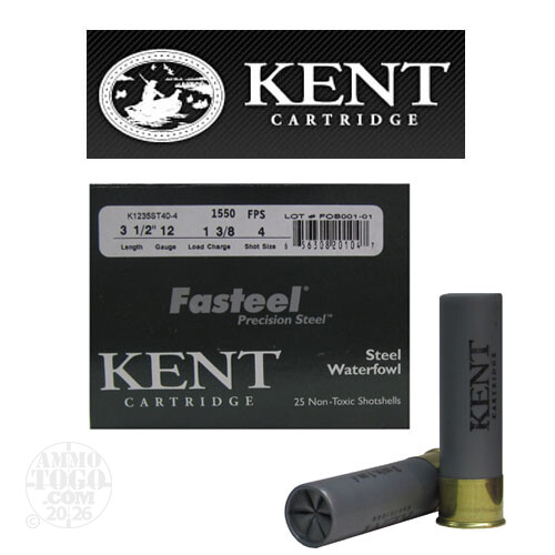 25rds – 12 Gauge Kent Fasteel 3-1/2" 1-3/8oz. #4 Steel Shot Ammo