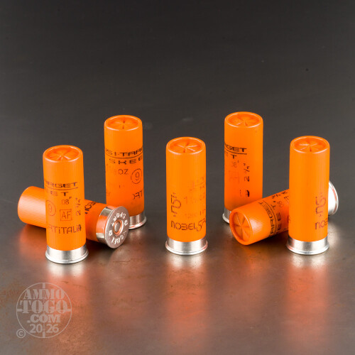 This is 12 Gauge Nobel Sport Skeet 2 3/4" 3 Dram 1 1/8oz. #9 Shot Ammo. This Shotgun Ammo is manufactured by NobelSportItalia in Italy. Developed with the high performance standards of American Skeet in mind, the Skeet Gold shotshells are assembled from the highest quality plastic cases, high antimony hard shot, carefully-matched propellant, even-patterning plastic wads, and NobelSport’s famous 209-sized target primers. This ammo is packed in 25rd. boxes. Muzzle Velocity: 1200 fps.