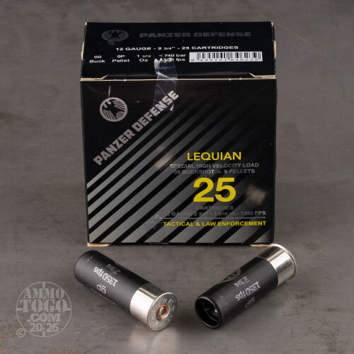 25rds – 12 Gauge Panzer Defense Lequian Special HV 2-3/4" 9 Pellet 00 Buckshot Ammo Details