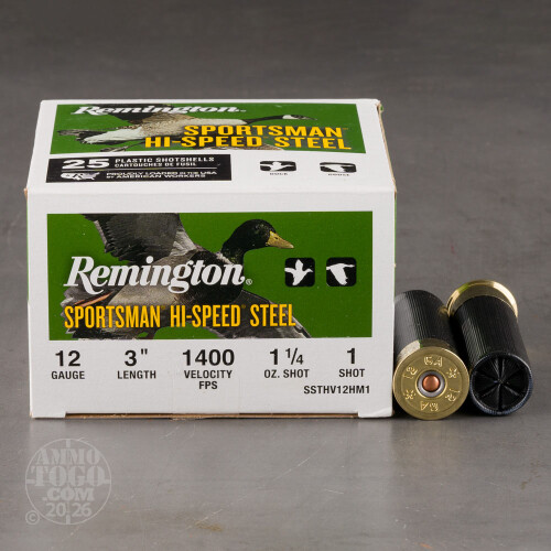 25rds – 12 Gauge Remington Sportsman Hi-Speed Steel 3" 1-1/4oz. #1 Steel Shot Ammo Details