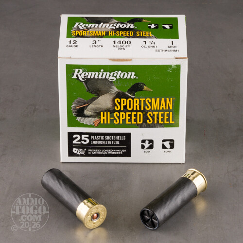 25rds – 12 Gauge Remington Sportsman Hi-Speed Steel 3" 1-1/4oz. #1 Steel Shot Ammo