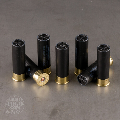 If you want a real challenge the next time you go duck hunting, try doing it with a 25 ACP pistol. But if you want a more accessible (yet still challenging) experience, do it with a 12 Gauge shotgun instead! And choose Remington Sportsman Hi-Speed Steel ammo for the job so long as you’re at it. It’s made in America. It offers great performance for a great value. You’re also already looking right at it, so you’ll save yourself the time and trouble of looking for anything else.This shell catapults nearly 130 pellets of #1 shot at its target, each piece of which is 0.16” in diameter and weighs around 4.3 grains in weight. It’s a good middle-sized pellet for taking geese and ducks alike. These uniformly spherical and rigid shot pellets pattern with excellent efficiency, and they contain zero lead that could mess up the ecosystem. High-brass heads – always in high demand – and tightly crimped hulls that can be reloaded by the right hands. The only problem with this ammo is that it’s in our warehouse instead of inside your shotgun!