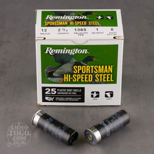 Leave a ReviewWhy Shooters and Hunters love or hate 25rds - 12 Gauge Remington Sportsman Hi-Speed Steel 2 3/4" 1oz. #6 Shot Ammo