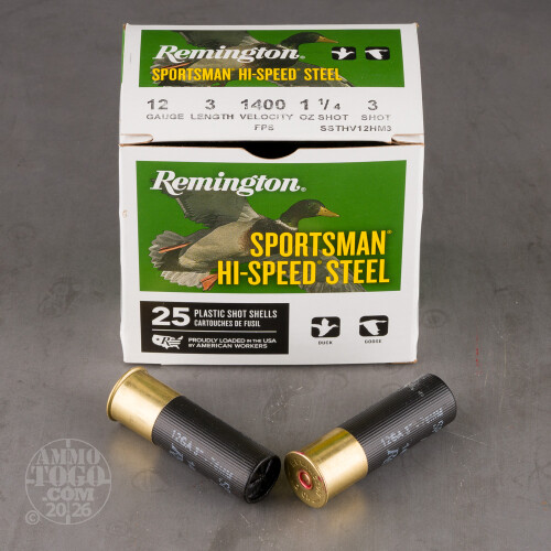12 Gauge Remington Sportsman Hi-Speed Steel 3" 1 ¼ ounce #3 Shot – 25 Rounds