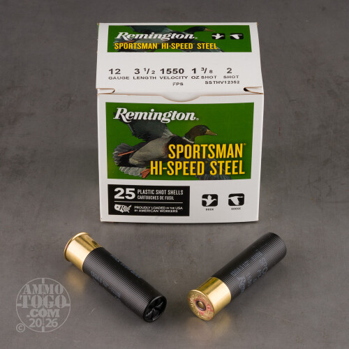 Leave a ReviewWhy Shooters and Hunters love or hate 25rds - 12 Gauge Remington Sportsman Hi-Speed Steel 3 1/2" 1 3/8oz. #2 Shot Ammo