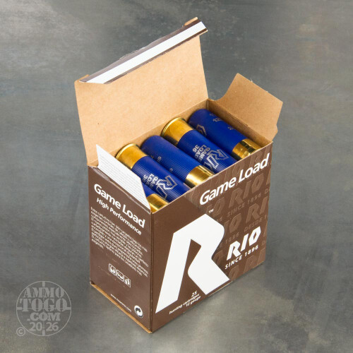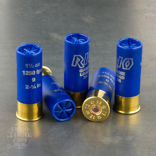 This is 12 Gauge Rio Game Load 2 3/4" 3 1/4 Dram 1 1/4oz. #9 Shot Ammo. Rio Ammunition products all have a very balanced charge developing high velocities and moderate pressures which produce extremely efficient shot patterns, time after time. Muzzle velocity 1250fps. This ammo comes packed 25rds. per box.