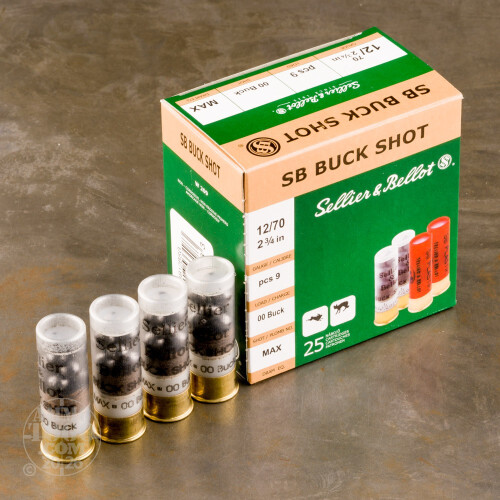 This is 12 Gauge Sellier and Bellot 2 3/4" 1 1/8oz. 9 Pellet 00 Buckshot Ammo. Sellier and Bellot produces a wide range quality ammunition, and these shells are one of those products. This 9 pellet 00 buckshot is loaded to maximum dram equivalent and is perfect for either home defense or hunting predators and varmints. It comes packed in 25rd. boxes. Muzzle Velocity: 1300 FPS.