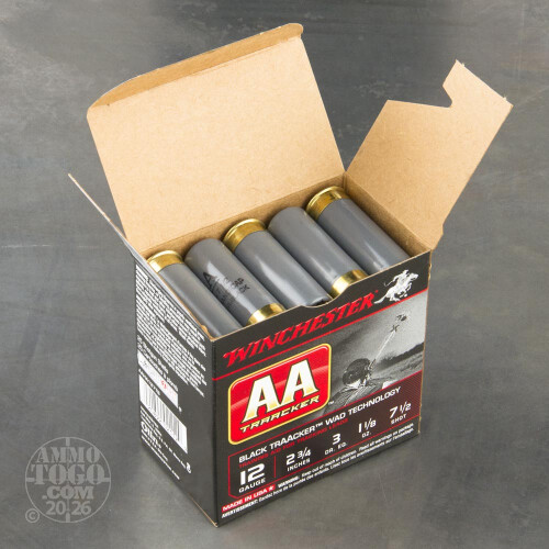 25rds – 12 Gauge Winchester AA TrAAcker (Black) 2-3/4" 1-1/8oz. #7.5 Shot Ammo Details
